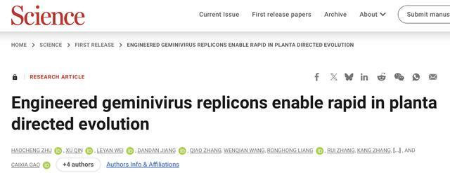 科学家开发植物体内快速定向进化技术